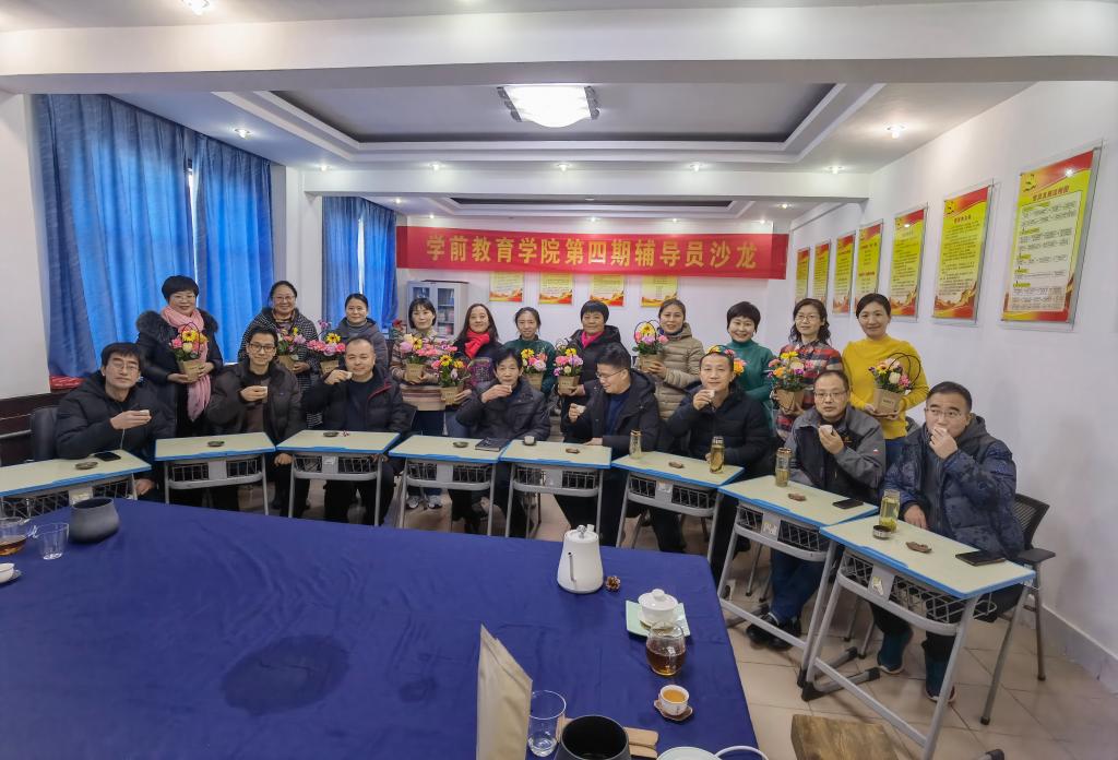 为提高辅导员的心理自助能力,让师爱更有力量。1月8日下午,学前教育学院(兖州师范校区)心理健康中心在综合活动室举办“花香茶韵,放飞心灵”第四期辅导员沙龙,校区全体专兼职辅导员参加,党总支书记马云水出席本次活动。活动由学生管理科丰琳琳主持。