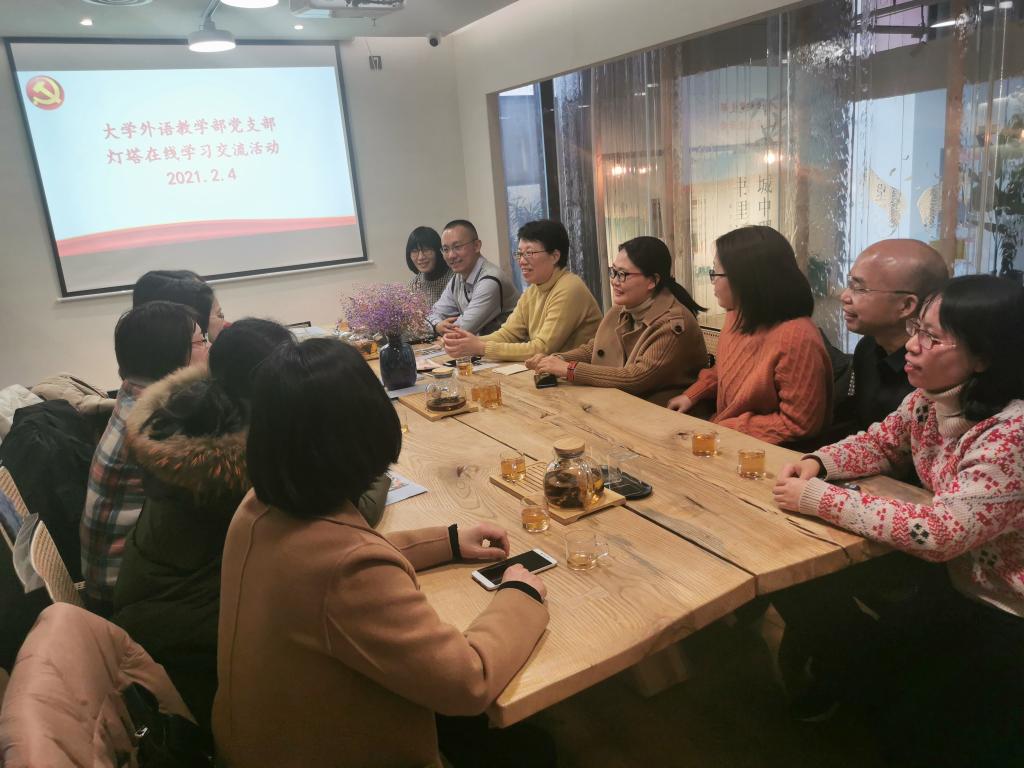2月4日上午,大学外语教学部党支部在运河城“理想书社”举办“灯塔在线”学习交流活动,交流分享“灯塔在线”“学习强国”等学习经验,并进行集中学习研讨。