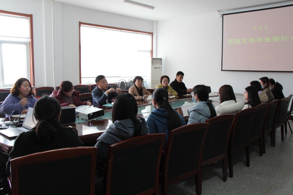 3月5日下午,中文系召开2021年春季援疆实习支教学生培训会。系党总支书记王艳萍,系党总支副书记李青、系副主任葛艳丽以及系团总支负责同志、有关辅导员老师、援疆实习支教学生等参加培训会。系主任王永超主持并作专题培训。