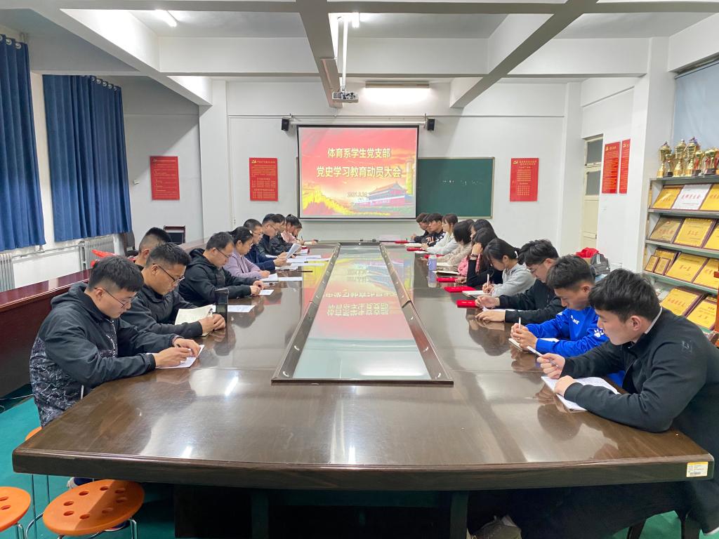 3月24日,体育系学生党支部在系党员活动室召开党史学习教育动员会,传达学校党委关于党史学习教育的有关精神,布置支部党史学习教育工作安排。会议由系党总支副书记、学生党支部书记陈长峰主持,支部全体党员参加。