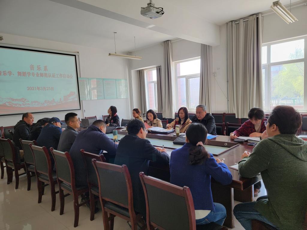 3月25日上午,音乐系召开音乐学、舞蹈学(师范类)专业认证启动会,系党总支书记、副书记、各教研室主任、辅导员等人员参会,会议由系主任葛修路主持。
