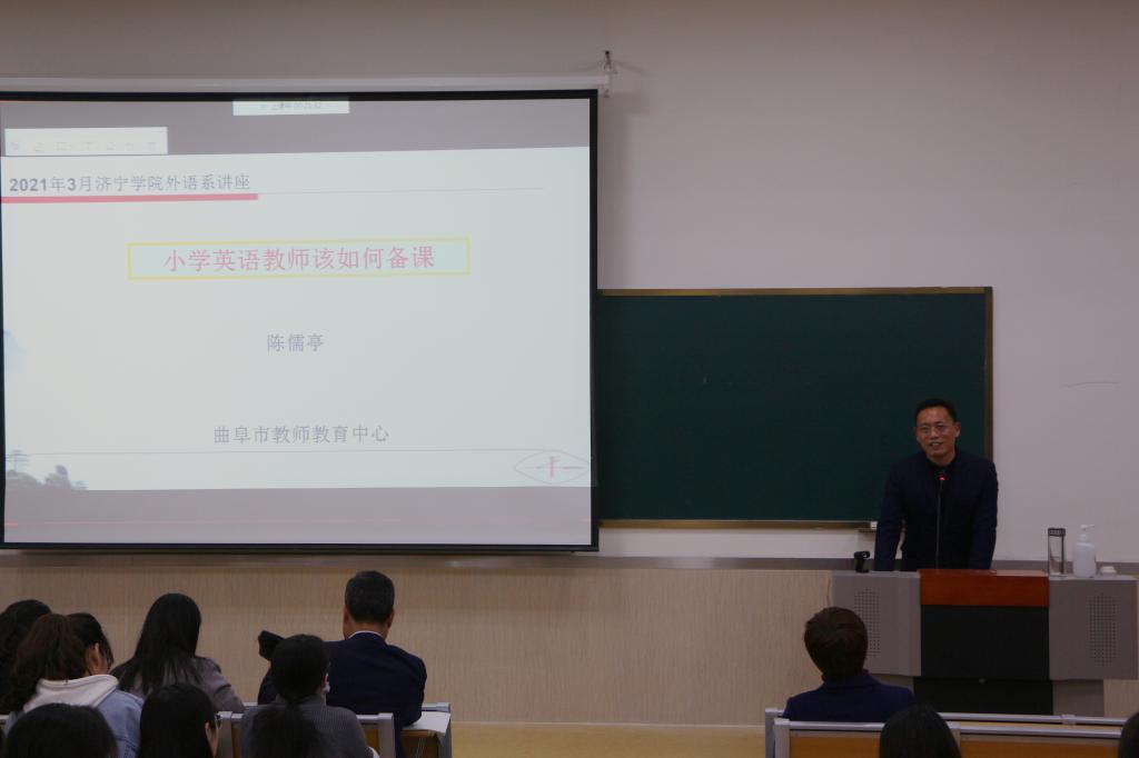 为迎接师范专业认证,深化课程改革,增强英语师范生专业技能训练效果,加强与中小学英语名师在从业技能提升方面的交流,3月31日晚6:30-9:00,外国语系成功举办“活力+”英语师范生从业技能培养工作坊第四期系列活动之一“名师进课堂”。外国语系英语师范生从业技能培养工作坊已连续成功举办三期,本次工作坊是第四期系列活动之一“名师进课堂”,聘请曲阜市小学英语教研员、济宁市杏坛名师、中学高级教师陈儒亭老师为亚星在线登录官网外国语系兼职教师。外国语系主任杨楠教授、英语师范生教师教育导师团和200多名英语师范生共同参加了此次活动。活动由外国语系吴瑞民老师主持。