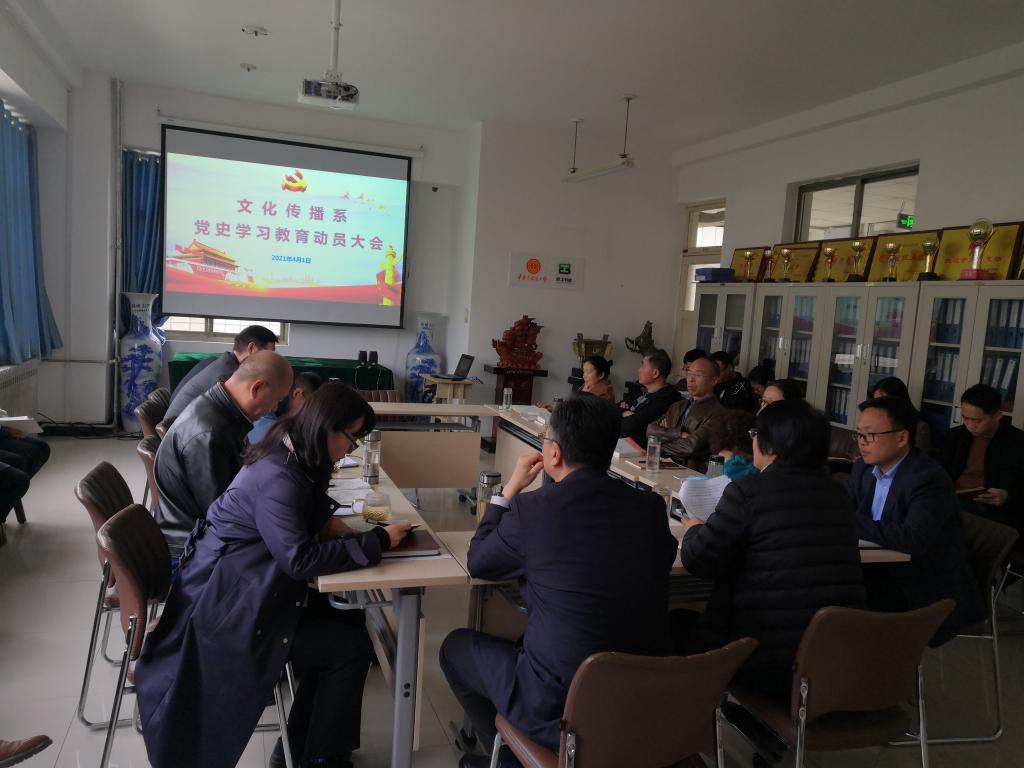 4月1日下午,文化传播系召开党史学习教育动员大会。系党总支书记卫建勋主持会议并做动员讲话,全体教工参加会议。