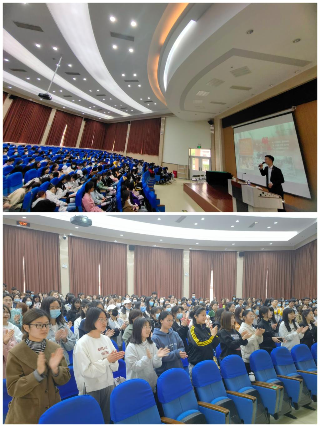 沂蒙精神是沂蒙人民在长期的革命和建设实践中形成的先进群体意识,是中华民族优秀文化的重要组成部分,是一种与时俱进的精神,尽管现在形势发生了很大的变化,但是在新的历史条件下,沂蒙精神依然是宝贵精神财富。通过聆听报告,同学们对沂蒙精神产生、发展及主题价值等方面有了直观的感受和认知,进一步深化了对习近平总书记指出的“沂蒙精神与延安精神、井冈山精神、西柏坡精神一样,是党和国家的宝贵精神财富”理解。徐阳用亲身的经历、深切的感受、朴实的语言、生动的故事,讲述了时代楷模赵志全践行社会主义核心价值观的先进事迹,展现了他开拓奋进、顽强拼搏的优秀品质和共产党员大公无私、敬业奉献的光辉形象。赵志全生前系山东省鲁南制药集团股份有限公司董事长、党委书记兼总经理,是沂蒙老区成长起来的优秀企业家,他用27年的时间把一个濒临倒闭的校办小厂,发展成净资产60亿元,年缴税8亿元的现代化制药集团公司,为沂蒙老区经济社会发展作出了突出贡献。他用实际行动诠释了新时代的沂蒙精神,充分体现了一心为民的思想境界、勇于担当的英雄气魄、大义忠诚的优秀品质、敢为人先的拼搏意志,深刻回答了“如何做人、如何做企业家、如何做新时代共产党员”的问题,2016年9月,中宣部追授赵志全为“时代楷模”。整个报告饱含深情、催人泪下,尤其在讲到赵志全的先进事迹,让师生真切感受到了赵志全作为一名党员的使命担当和无私奉献的宝贵精神。