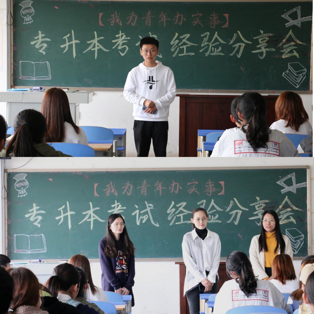 专升本考试一直是同学们关心的热门话题,通过开展经验交流会,为准备专升本的同学搭建学业互助平台,发挥学生党员的先锋模范作用,在帮助学生解决实际问题的同时,把党史学习教育成果转化成“我为青年办实事”的强大动力,以优异成绩向建党100周年献礼。