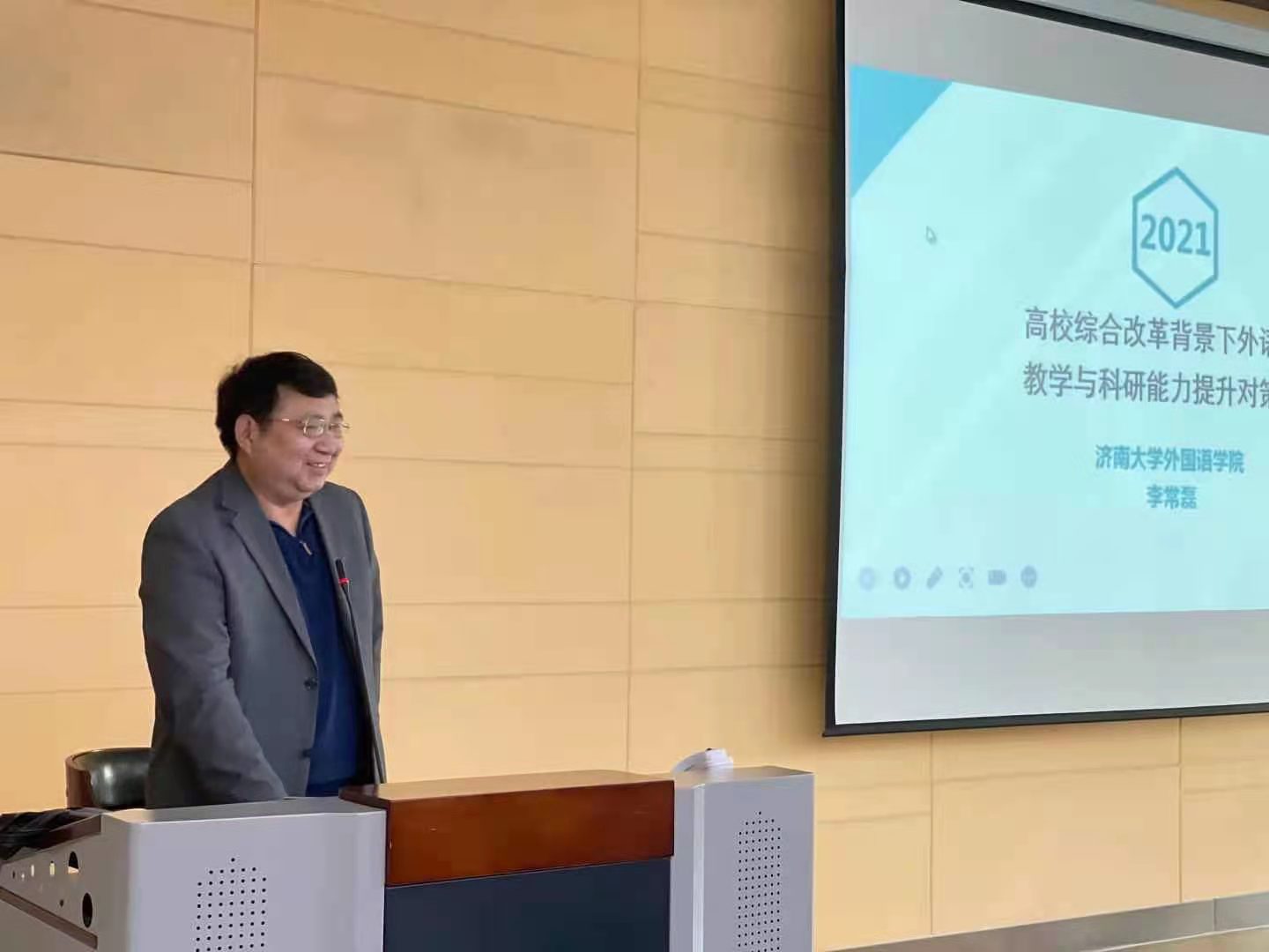 4月9日上午,济南大学外国语学院院长李常磊教授应邀来我院作了题为“高校综合改革背景下的外语教师教学与科研能力提升对策研究”的学术报告。大学外语教学部副主任张殿海主持,大学外语教学部全体教师参加了报告会。