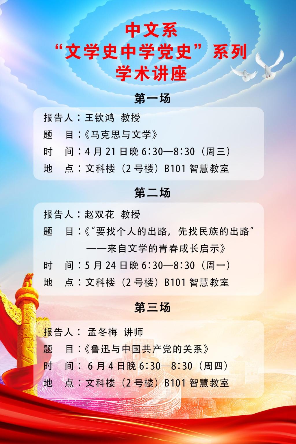 党史学习教育在着意于“深”、着力于“实”上下功夫。4月至6月,中文系将连续推出“文学史中学党史”系列学术讲座,加强党史学习教育、爱国主义教育、文学传统教育,提升文化认同。“红五月”(第四季)文化党建活动,将通过举办“中华经典诗文咏唱会”及走进红色教育基地等活动,将党史学习教育与弘扬中华优秀文化紧密结合起来。继续开展“我为师生办实事”系列活动,采取召开专题座谈会、走访调查、个别访谈、问卷调查等方式深入开展调研,开展“亮身份、强服务、做表率”活动等。学习调研求实效,服务师生见行动,有力推动党史学习教育扎实有效开展。