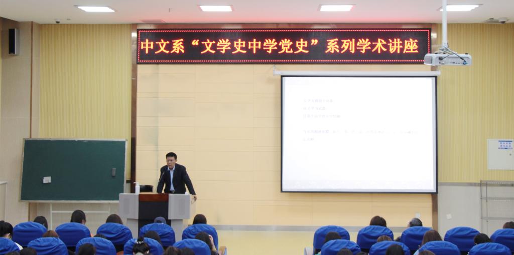 在庆祝中国共产党成立百年之际,为深入学习贯彻落实习近平总书记在党史学习教育动员大会上的重要讲话精神,响应党中央关于在全党开展党史学习教育号召,巩固深化“不忘初心、牢记使命”主题教育,中文系创新党史教育形式,注重发挥学科专业优势,策划“文学史中学党史”系列学术讲座。4月21日晚,中文系王钦鸿教授在文科楼B201智慧教室畅谈《马克思与文学》,全校师生200余人聆听讲座。讲座由中文系党总支副书记李青主持。
