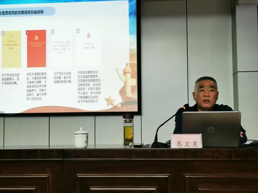 根据省委巡视意识形态工作专项检查整改要求,为进一步加强我校宗教工作,提升我校团学干部的宗教政策理论水平和工作能力,4月19日下午,学校特邀请济宁市委统战部政策法规科四级调研员、济宁圣地名师马卫东同志作宗教工作专题报告。学生工作处全体同志、各系(院)党总支(党委)副书记、团总支书记、全体辅导员共计80多人听取了报告会。报告会由党委统战部副部长徐俊凯主持。