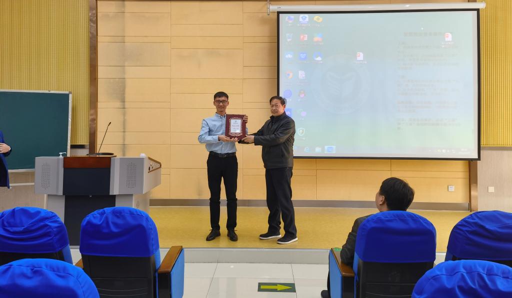 报告会前,韩华为胡庆勇校友颁发纪念铭牌。韩旭从大学期间的健身学习经历和毕业后的创业成长故事等方面,讲述了树立成长型思维,不断努力做到终身成长的重要性。胡庆勇从分享回顾自身学习工作经历出发,讲述了营地教育行业发展的良好前景,以及扎实练好基本功和增强前瞻意识在职业发展中的重要意义。