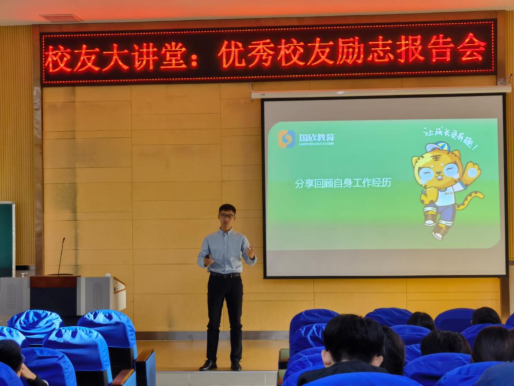 4月27日,体育系在2号楼B101教室举办“校友大讲堂”活动暨优秀校友励志报告会。系主任韩华,党总支书记辛亚杰,校友、济宁市IFIT健身工作室创始人韩旭,校友、山东国欣颐养集团教育发展有限公司莒县基地执行主任胡庆勇,部分教师及学生代表参加本次活动。辅导员孔李俊主持。
