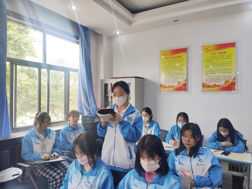 最后,丰琳琳给预备党员、入党积极分子提出了三点希望:一是希望同学们积极投身党史学习教育,做学习的排头兵;二是希望同学们学史崇德、学史力行,在学中做、做中学,做到知行合一;三是希望同学们发扬红色传统,传承红色基因,传播红色力量,将校区学生的党史学习教育推向高潮。
