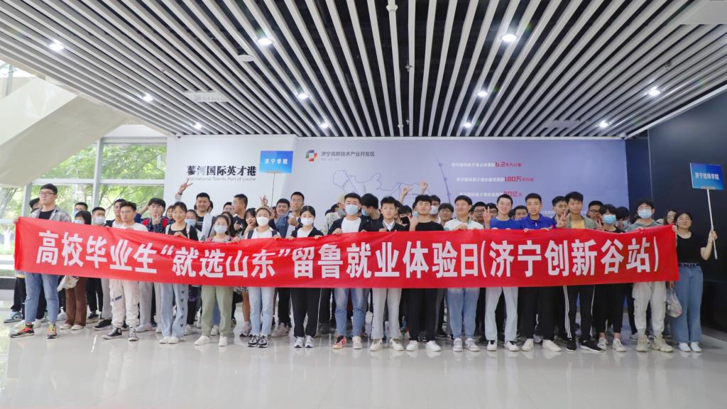 为全面落实省委、省政府“双招双引”战略,积极加强校地企三方合作,引导吸引优秀毕业生留在山东、服务山东、建设山东,5月14日,由山东省公共就业和人才服务中心、济宁高新技术产业开发区管理委员会主办,济宁创新谷发展集团有限公司、政和科技股份有限公司承办,高校毕业生“就选山东”留鲁就业体验日暨济宁创新谷人才集市活动成功举行。我校来自经济与管理系、数学系、物理与信息工程系、计算机科学系、生命科学与工程系和美术系,六个系共40名毕业生代表在就业办黄超老师的组织带领下参加体验日活动。