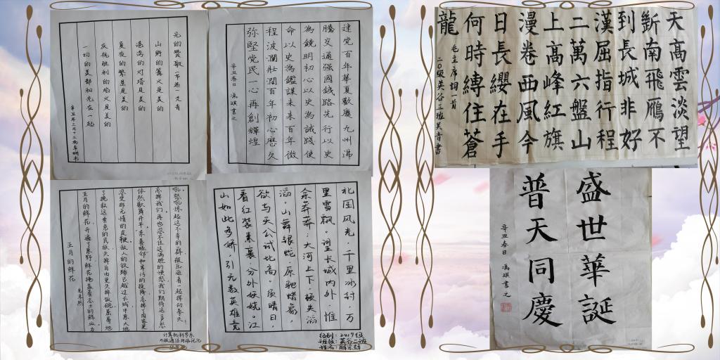 通过此次活动,同学们用纸墨书党史,以丹青明心志,借笔端颂党情,展现了扎实的书法功底和深厚的爱党爱国爱校情怀,也进一步推动了党史学习教育的深入开展。
