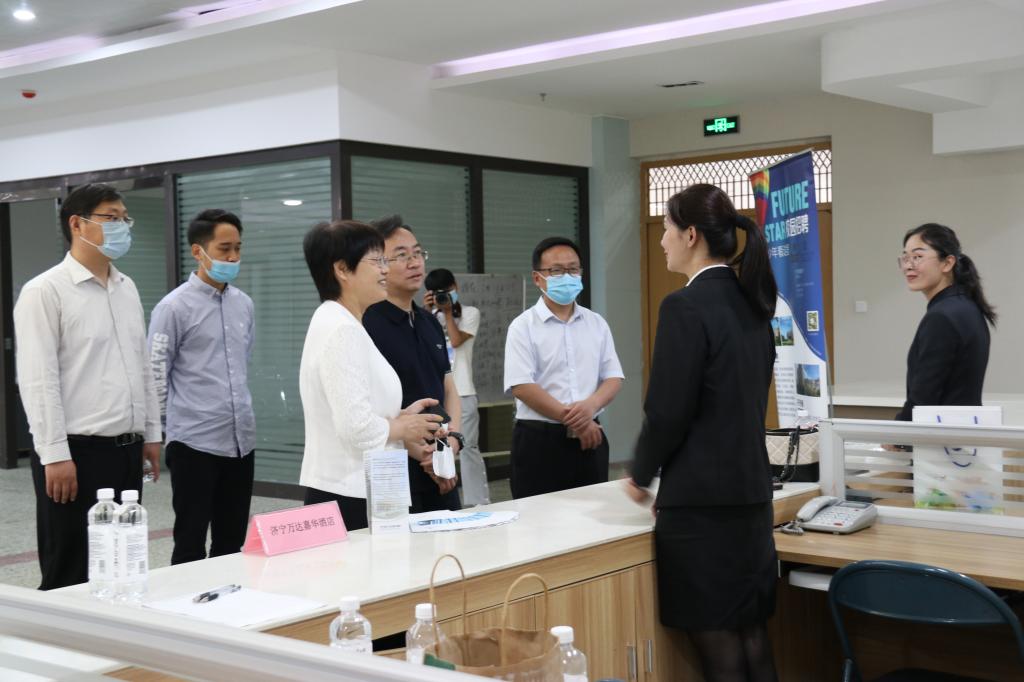 双选会邀请北京金茂万丽酒店、上海鲁能JW万豪侯爵酒店、济宁华瑞园集团等8家企业参加,提供就业和实习岗位200余个。双选会由企业宣讲、投递简历、现场面试等环节组成。在宣讲环节,各用人单位通过视频、ppt等形式对企业品牌、企业文化、工作环境、薪资待遇、用人条件等方面进行了详细介绍;在投递简历和现场面试环节,学生围绕就业岗位、实习培训、安全保障、饮食住宿等问题进行了咨询。各企业人力资源部门负责人对学生提出的问题作了细致的解答。系党总支书记卫建勋、主任王玉华到现场与用人单位和学生进行了交流,详细了解用人单位的岗位需求、用人规格和数量、职业发展路径;询问学生们的就业和实习意向,听取学生对系就业和实习服务工作的意见建议。