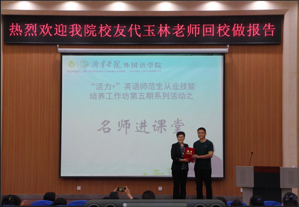工作坊开始,杨楠为代玉林颁发聘书,感谢代玉林心系母校、回馈母校;杨楠也表达了对在校英语师范生的殷切期望,希望同学们不断提升自身的教师技能水平,心怀爱的种子,从事自己热爱的教育,让爱的教育创造成长奇迹。