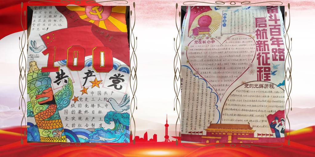 一幅幅色彩鲜明的图画描绘了党的奋斗历程,讴歌了党的丰功伟绩,一笔笔坚定有力的文字抒写了党的伟大成就,弘扬了党的红色精神。本次活动,同学们通过手绘的方式,学党史感党恩、讲文明传新风,以实际行动向党的百年华诞献礼。