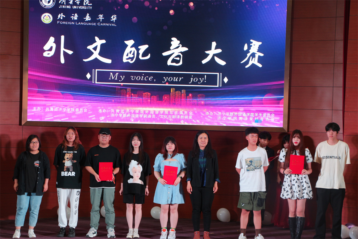 5月26日18:30,外国语学院在理科楼报告厅成功举办“外语嘉年华”第四届"My Voice,Your Joy"外文配音大赛决赛。 外国语学院党委副书记许言强,评委教师仇丽丽、孔迁迁、刘伟华、姜璨、田清敏与260名来自外国语学院、化学化工与材料学院、儒商学院、人文与传播学院的学生共同参加此次大赛。