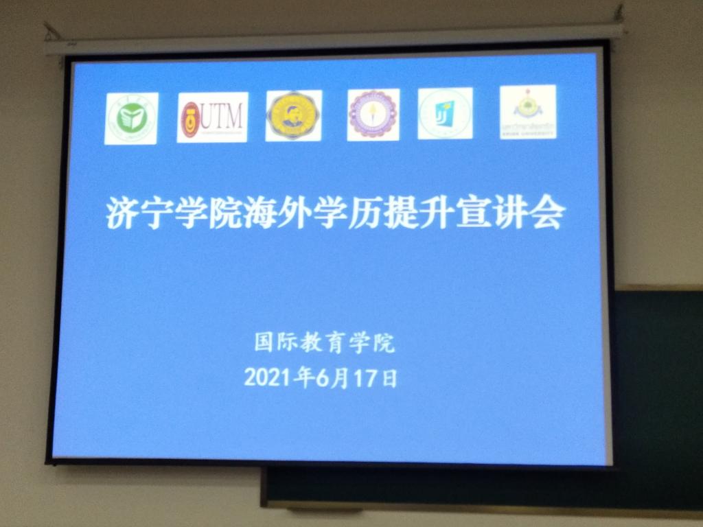 6月17日下午6:30,我校国际教育学院联合韩国全州大学、马来西亚理工大学、菲律宾国父大学、泰国东南曼谷大学、泰国格乐大学驻中国办事机构的校方代表在文科楼B102举办了海外学历提升宣讲会,150余名师生参加了此次宣讲会。