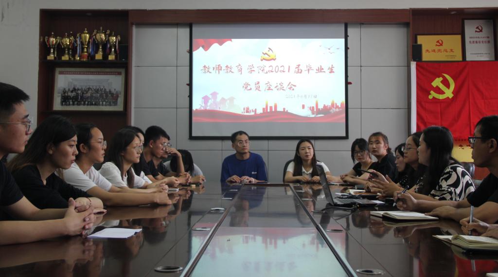 为进一步提升毕业生党员的党性修养,激发毕业生党员做新时代奋斗者的行动自觉,6月17日下午,教师教育学院召开2021届毕业生党员座谈会,学生党支部书记杜鹃主持,2021届全体毕业生党员参加。