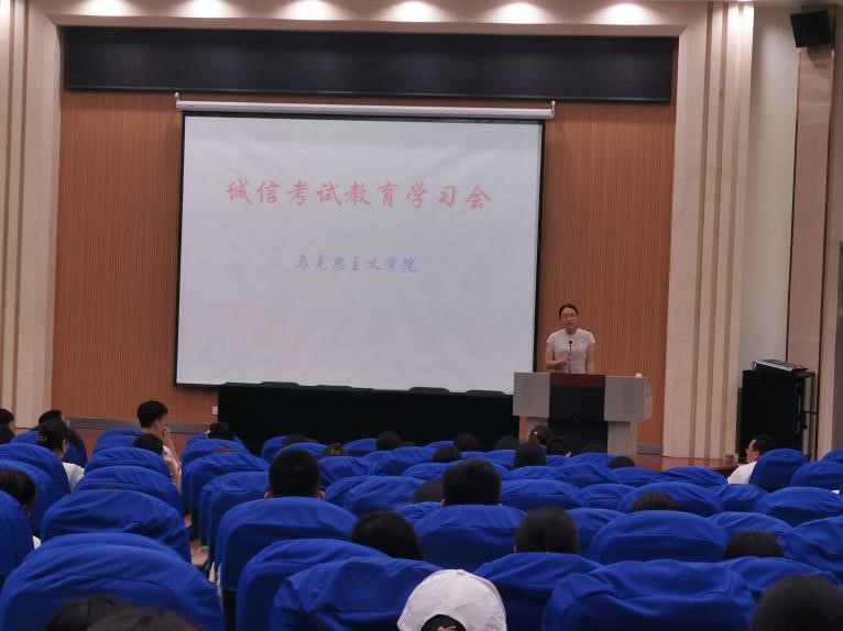 为进一步加强学风建设,引导同学们端正考风、严肃考纪,营造文明、诚信考试的良好氛围,同时指导同学们合理规划假期学习和生活,增强安全防范意识,6月22日晚,马克思主义学院在3号楼报告厅召开了诚信考试教育暨假期安全教育大会。该院党委书记樊海涛、副院长沙世蕤、辅导员姚海生及全院学生参加会议。