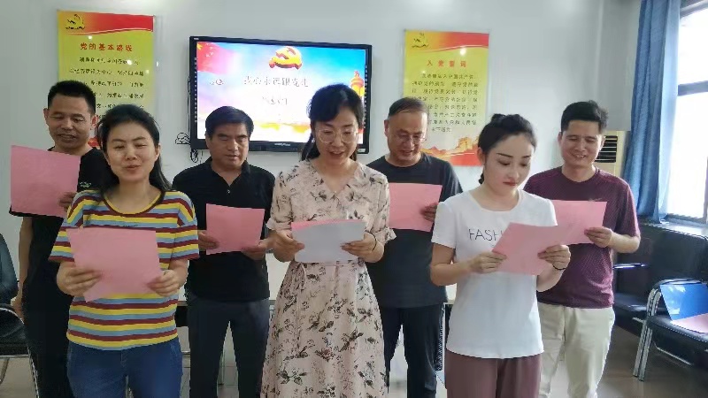 活动以“红诗献给党”拉开序幕。两个党小组分别以独诵与合诵的形式朗诵了献给党的诗《永远跟党走》、《红旗颂》、《红色的七月》、《高扬的党旗》。同志们用激昂的声音、充沛的情感、丰富的肢体语言,从不同方面,歌颂和赞美伟大的祖国、伟大的党。诗词里磅礴的气度,在铿锵有力的展演里散发着巨大的力量,催人奋进。在“我讲党史小故事”环节中,徐广连和李洪艳同志分享了《中国共产党的七一纪念日》、《罗亦农与李文宜》两个小故事,带领大家共同回顾中国共产党走过的峥嵘岁月。鲜活的红色人物,感人的革命故事,深深打动着在场的每一位党员,让大家接受了一次深刻的党性洗礼。活动在重温入党誓词中结束,全体党员面向党旗,高举右拳重温入党誓词,神情庄重、声音铿锵,激励自己不忘初心、牢记使命、永远奋斗。