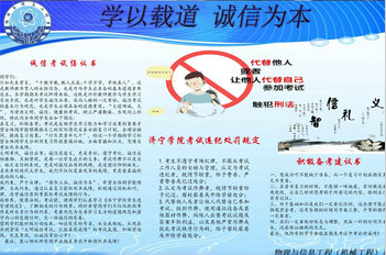 该院各班召开诚信考试主题班会,组织学生学习《学生手册》中有关考试纪律的规定和处理办法,全体同学签订了“诚信考试承诺书”,使“诚信守纪光荣,违纪作弊可耻”的观念深入人心,教育学生以正确的态度对待考试。利用黑板报、宣传栏、微信、抖音新媒体大力宣传“学以载道、诚信为本”的中华民族优秀传统文化,努力营造诚信迎考的良好考试氛围。