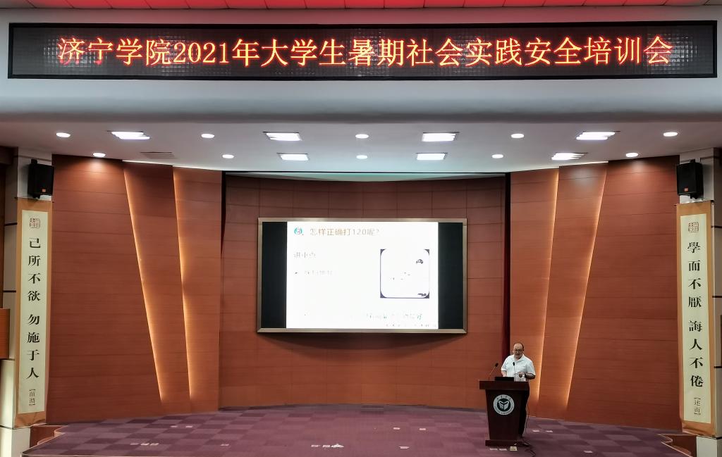 为进一步增强师生安全意识,保障我校2021年暑期社会实践顺利进行,6月29日下午,校团委在理科楼报告厅举办2021年大学生暑期社会实践安全培训会,邀请曲阜市中医院急诊科主任贺磊和急诊科护士长孔敏为我校师生宣讲安全急救知识和技能。校级实践队指导老师、校院两级实践团队负责人共百余人参加了活动。