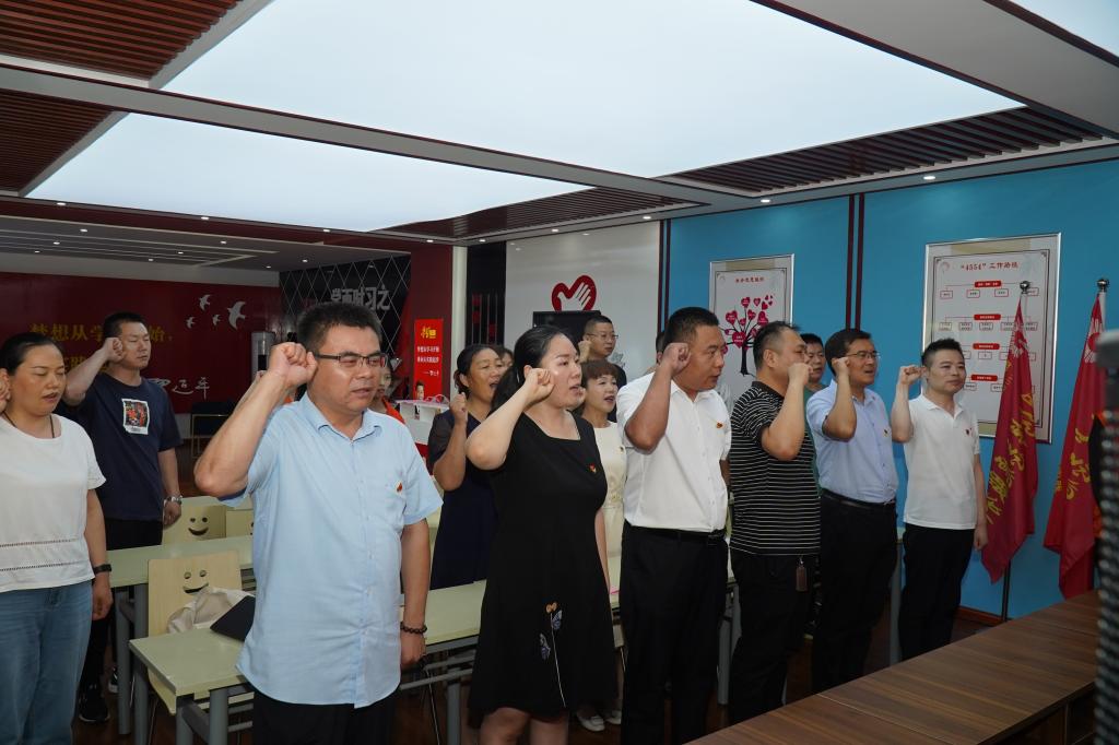 首先,姜璨老师致辞,希望同学们要学以致用,不断提高将书本知识转化为实践的能力和水平,在实践中展现出大学生良好素质和优良品质。她表示,作为一项提高大学生综合素质的社会实践活动,“三下乡”不但能够提升大学生社会实践能力和素质,而且为大学生了解国情开启了一扇窗口,同学们要扎根中国大地了解民情,通过社会实践坚定理想信念、站稳人民立场、练就过硬本领、投身强国伟业,把“三下乡”活动打造成为学子深入基层、服务人民、奉献社会的良好平台,希望同学们增强安全意识,牢固树立“安全第一”的理念,预祝活动取得圆满成功。接着,与会人员一起学习了《习近平总书记在庆祝中国共产党成立100周年大会上讲话》,总书记的讲话通篇闪耀着马克思主义的真理光芒,是给全体党员上的一堂生动深刻的党史教育课、初心使命课,也是向全世界的庄严宣示、向全体党员的伟大号召、对全国人民的广泛动员,大家一致表示,要深入学习贯彻习近平总书记重要讲话精神,在新征程上继承和发扬伟大建党精神,更好肩负起时代赋予的光荣使命,为实现中华民族伟大复兴贡献力量。最后,全体党员重温入党誓词,一起回忆入党宣誓时的庄严承诺和坚定决心。