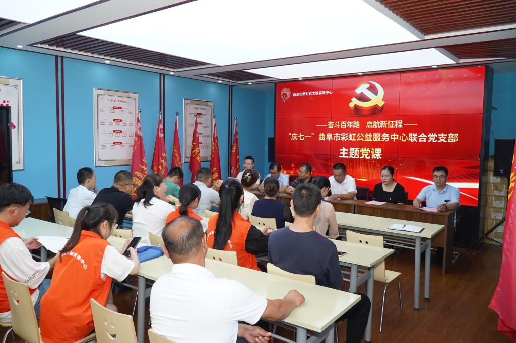 7月3日上午,外国语学院2021年度大学生暑期“三下乡”活动启动仪式暨彩虹公益联合党支部主题党日活动在曲阜市新时代文明中心举行,该学院辅导员姜璨、张磊,曲阜市彩虹公益服务中心理事长康绪虎及“三下乡”活动学生代表等参加活动。