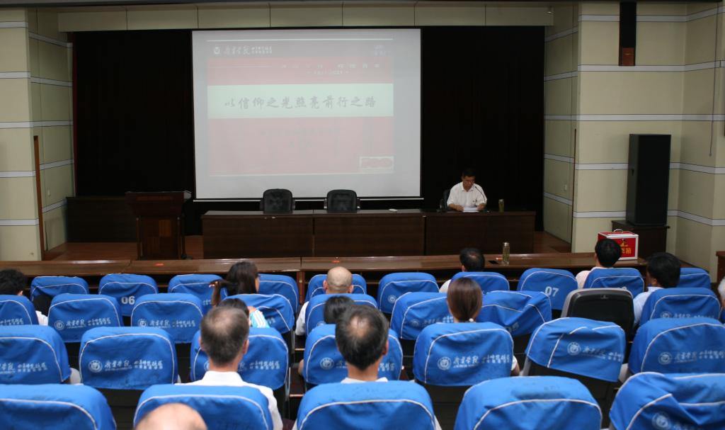 然后,他以《以信仰之光照亮前行之路》为题,紧紧围绕“信仰”为全体党员上了一堂内容丰富的党课。他从共产党人的信仰、信仰的力量、时代先锋、坚持信仰等四个方面展开,指出坚定的信仰和崇高的理想,始终是中国共产党人战胜各种艰难险阻,不断夺取革命建设改革胜利的力量源泉。结合工作,他要求教师要成为大先生,做学生为学、为事、为人的示范;要研究真学问,善于学习新知识、新技术、新理论,致力于解决实际问题;要坚定理想信念,自觉做中国特色社会主义的坚定信仰者和忠实实践者。
