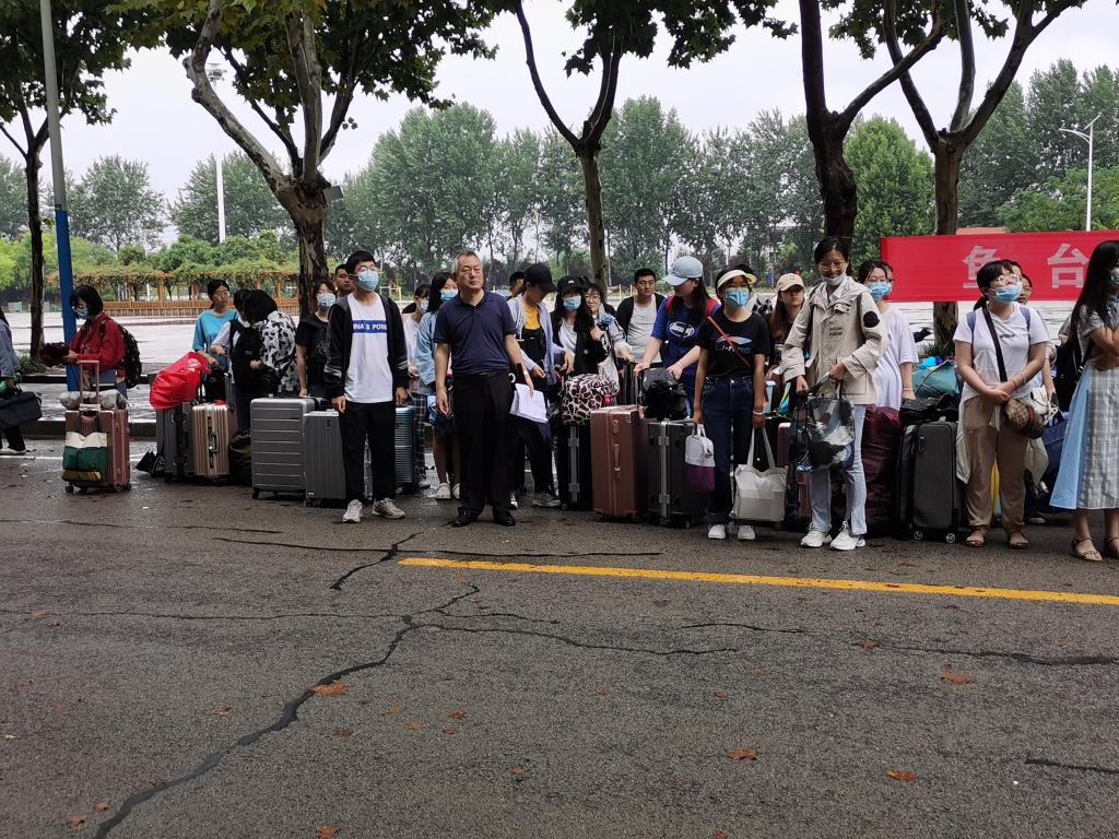 8月30日上午,樊海涛、姚海生为前往梁山、汶上、鱼台、邹城、金乡支教的学生送行。