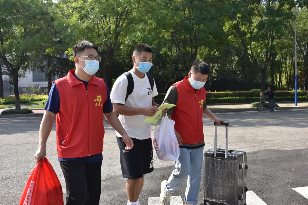 学生党员示范岗分设在学校南门、迎新志愿者服务区、学院报到处三个区域。清晨,学生党员们早早集合,设置迎新站点、分配任务,为迎新工作做好了充分准备。登记报到、核酸检测、搬运行李、领取开学物品、发放大礼包等环节,随处可见学生党员的身影。为使学弟学妹们尽快熟悉大学生活,他们还主动向新生介绍学校基本情况、分享生活与学习经验,为学弟学妹们答疑解惑。