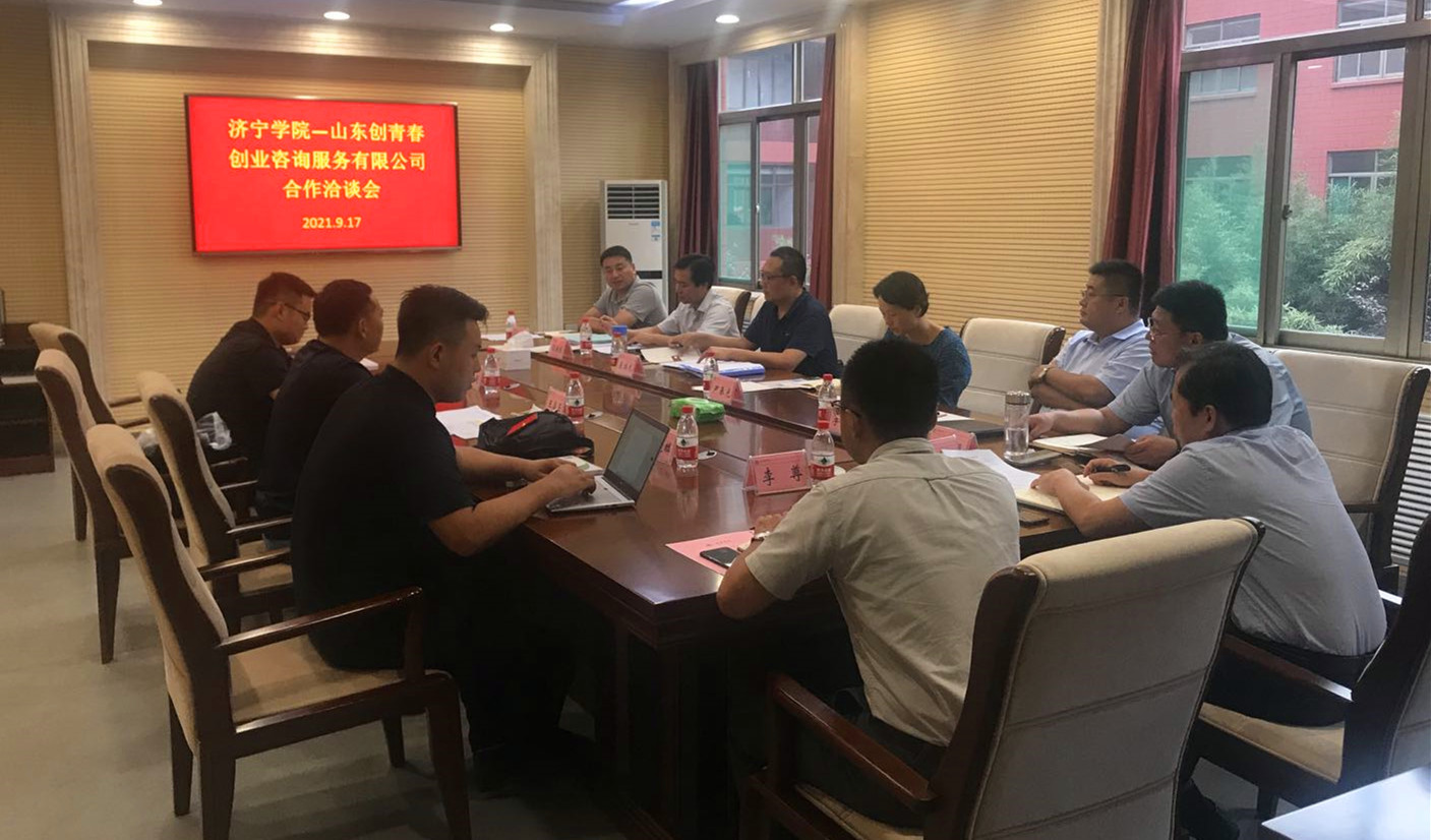9月17日下午,学校与山东创青春创业咨询服务有限公司合作洽谈会在行政楼A221会议室召开。
