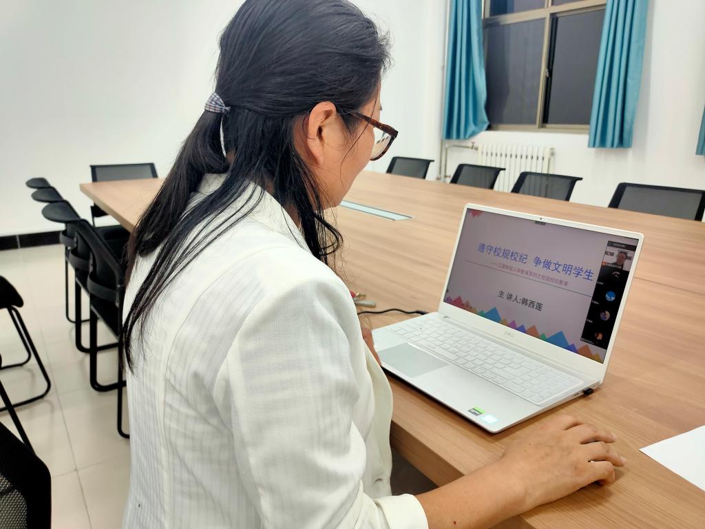 为帮助2021级新生了解和掌握学校各项规章制度,从而培养良好的学习习惯和生活习惯,9月20日晚,工程学院通过腾讯会议举办了2021级新生入学教育之校规校纪教育专题讲座。本次讲座由该院党委副书记韩西莲主讲,2021级全体新生聆听了讲座。