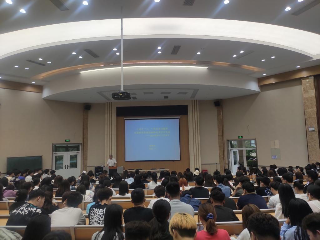 9月19日下午,音乐学院党委书记葛修路以“学七一讲话,悟使命担当”为题,为2021级全体新生讲授“开学第一课”。该院党委副书记蒿鹏、团委书记岳娜及全体师生参加了第一堂课的学习。