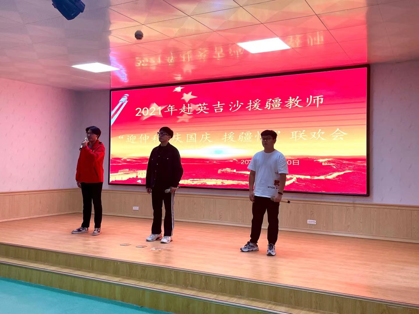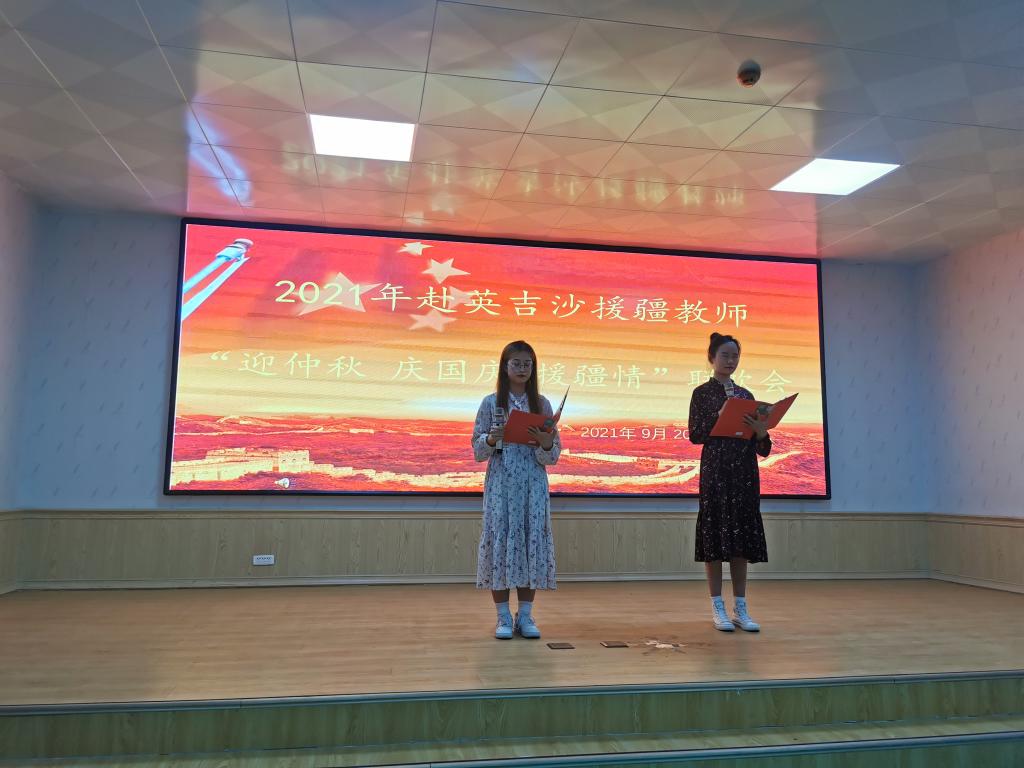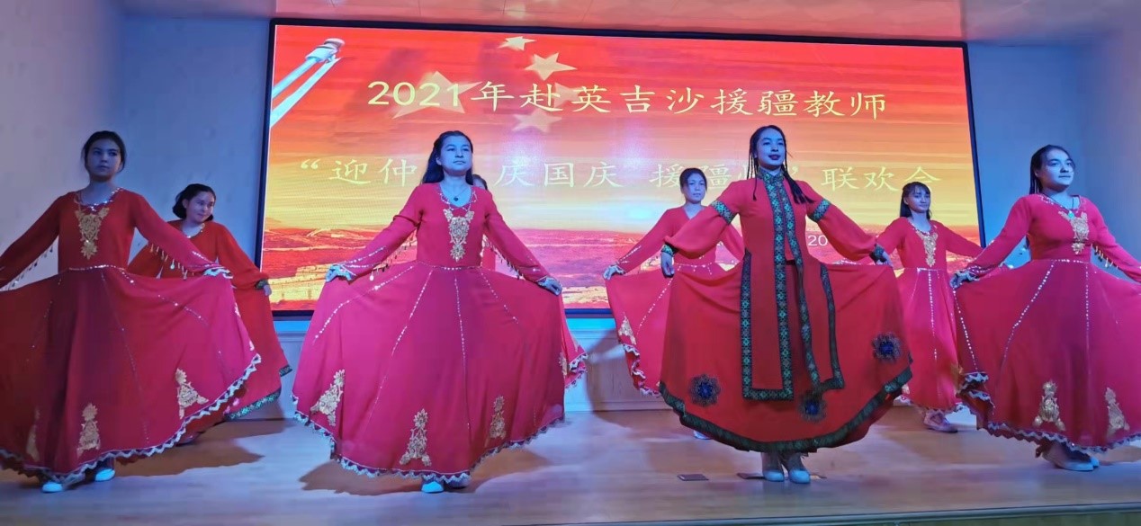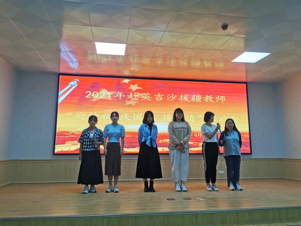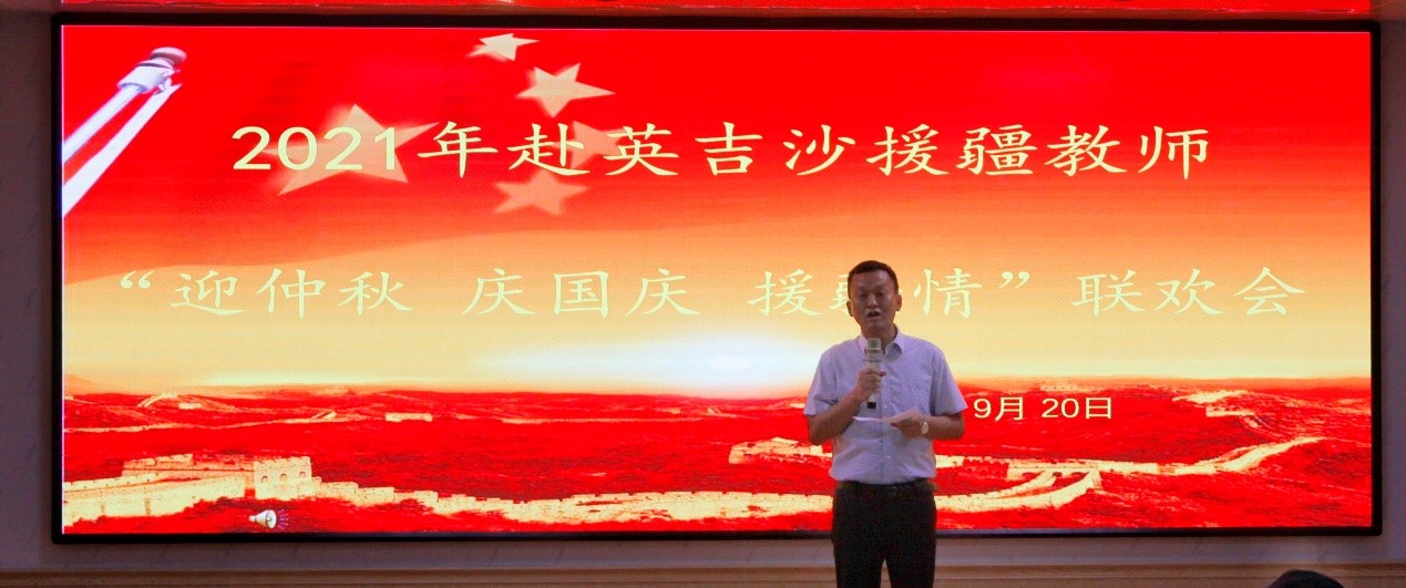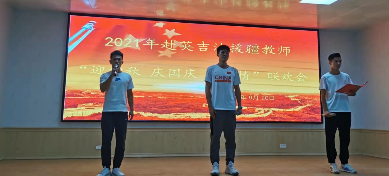 9月20日下午五点,亚星在线登录官网援疆支教的老师和部分同学一起来到英吉沙职业高中的报告厅,和泰山学院的师生、济宁市职业学校援疆支教的老师们、英吉沙职业高中的部分师生一起举办了“2021年赴英吉沙援疆教师‘迎中秋 庆国庆 援疆情’”联欢会。济宁市援疆指挥部党委委员、英吉沙县县委组织部副部长李加峰,济宁市援疆指挥部党委委员、英吉沙县教育局副局长蔡高巍,英吉沙县教育局党组副书记、局长马成龙等领导观看了演出。马成龙向所有援疆教师致以节日问候,他表示,援疆教师带着济宁人民的嘱托,远离家乡,远离亲人,不远万里来到英吉沙,克服各种困难,用自己的智慧和汗水谱写了援疆工作新篇章,对济宁的援疆情谊表示感谢,并预祝活动取得圆满成功。