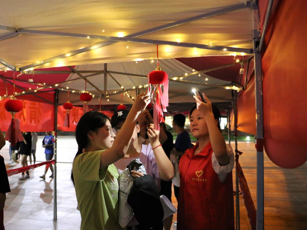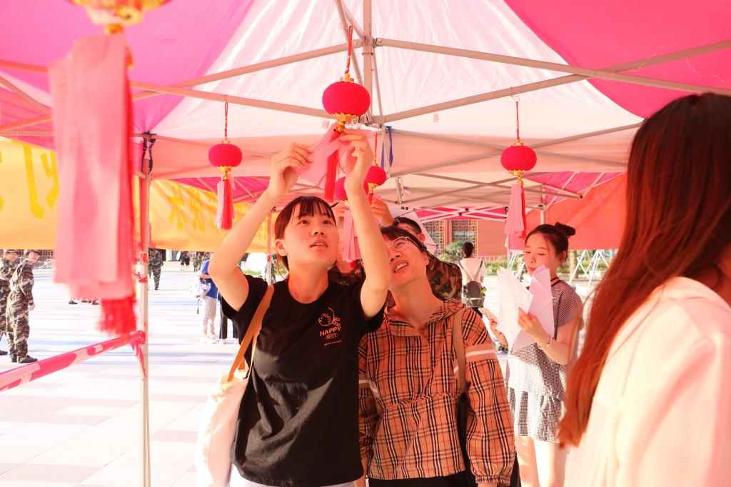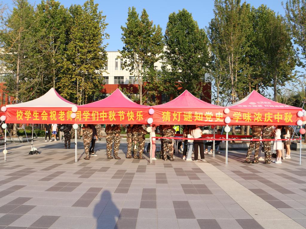 9月21日下午,学校广场餐厅前彩灯闪烁、气氛热烈,由校团委校学生会举办的“猜灯谜学党史”中秋活动在这里举行。当党史学习教育邂逅中秋佳节,火红的灯笼搭配着党史知识灯谜,同学们在游戏中学习党史知识,接受党史教育。