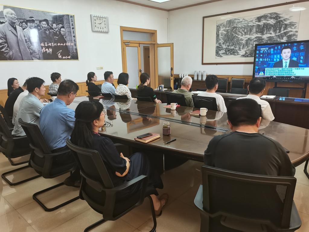 会上,集体收看了习近平总书记近期重要活动的新闻报道。重点学习了8月31日习近平主持召开的中共中央政治局会议精神,习近平9月1日在中央党校(国家行政学院)中青年干部培训班开班式上的讲话精神、9月5日在陕西榆林考察时的讲话精神,9月9日习近平勉励全国高校黄大年式教师团队代表的回信等视频。