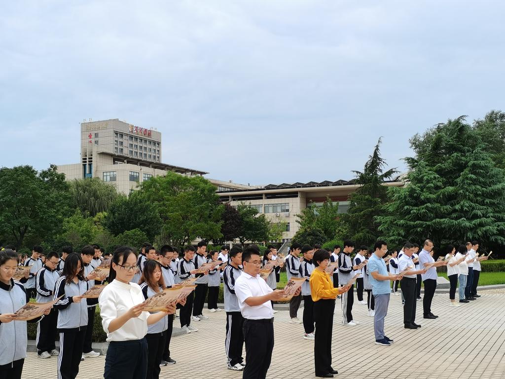 活动中,全体师生身着正装,庄严肃立,怀着一颗崇敬之心,共同向至圣先师孔子行三鞠躬礼,表达亲师乐道、立志从教之情。随后,师生手捧经典,共同诵读《论语》经典名句,聆听圣人的谆谆教诲,领悟学者为己的意境。