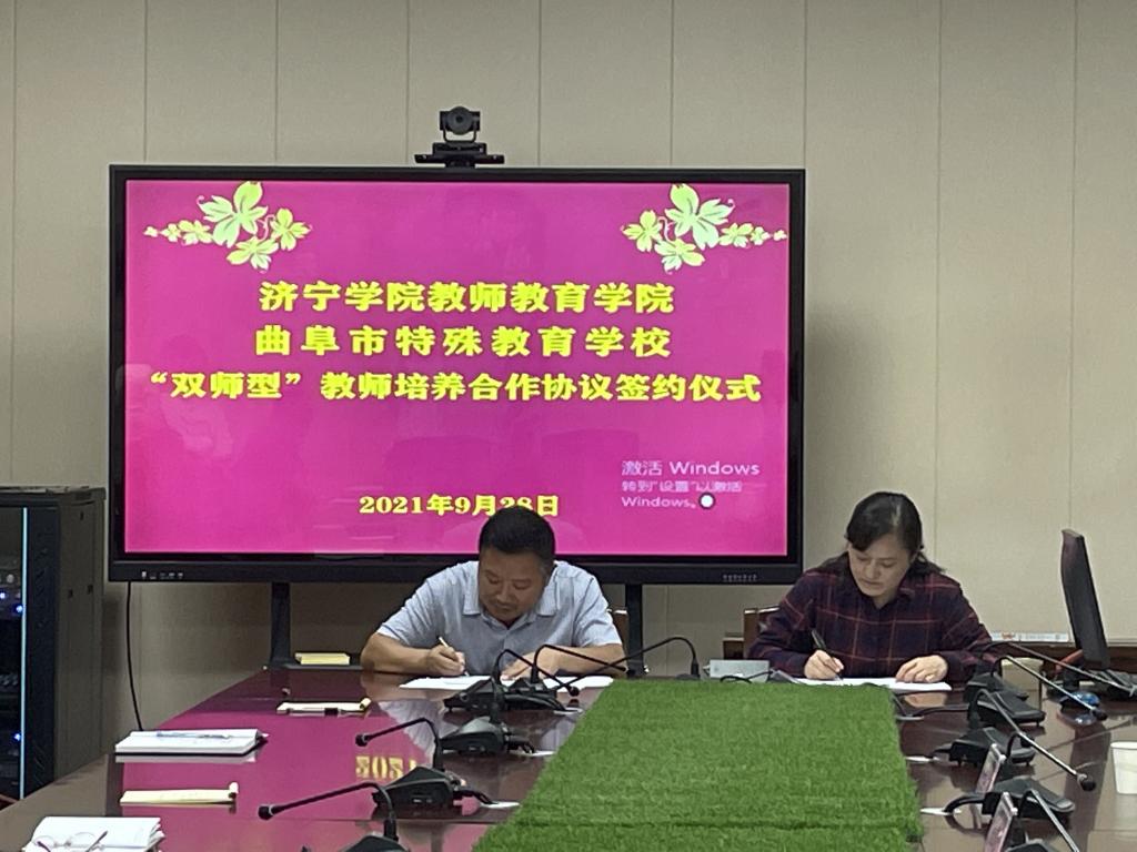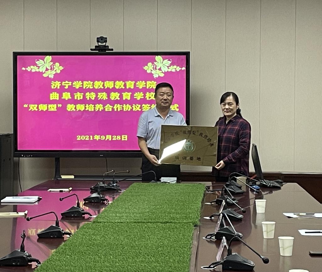 9月28日,教师教育学院“双师型”教师培养培训基地合作签约授牌仪式在曲阜市特殊教育学校举行。教师教育学院党委书记乔东华、院长李群,曲阜市特殊教育学校校长董福会及双方相关人员参加了签约授牌仪式。