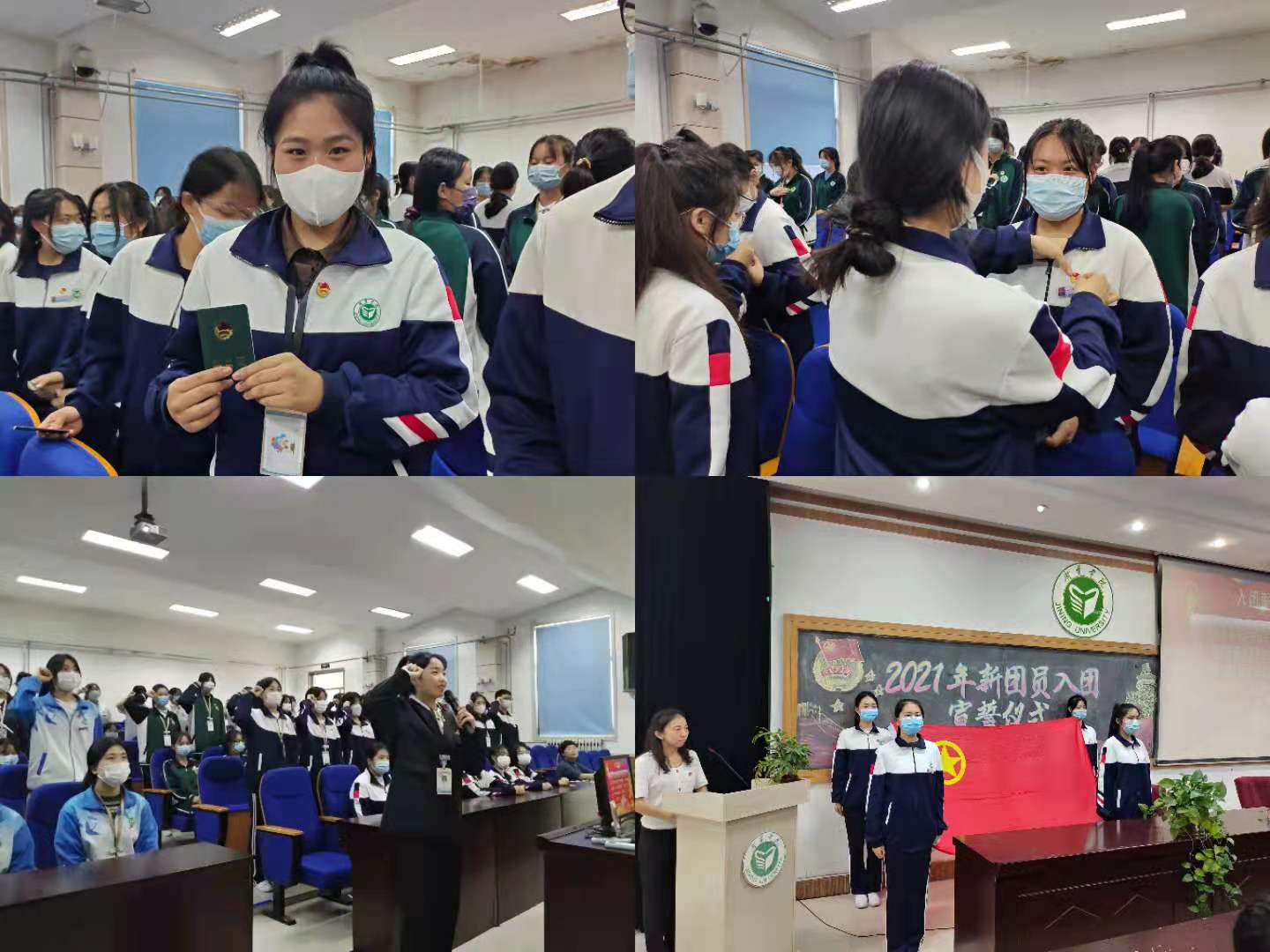 入团宣誓仪式在雄壮的国歌声中拉开帷幕,该院团委书记丰琳琳同志宣读了新团员名单,随后由老师和老团员代表为新团员颁发团证、佩戴团徽,32名新团员在团旗下庄严宣誓。