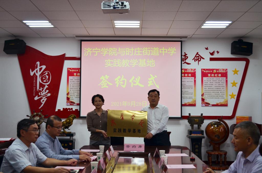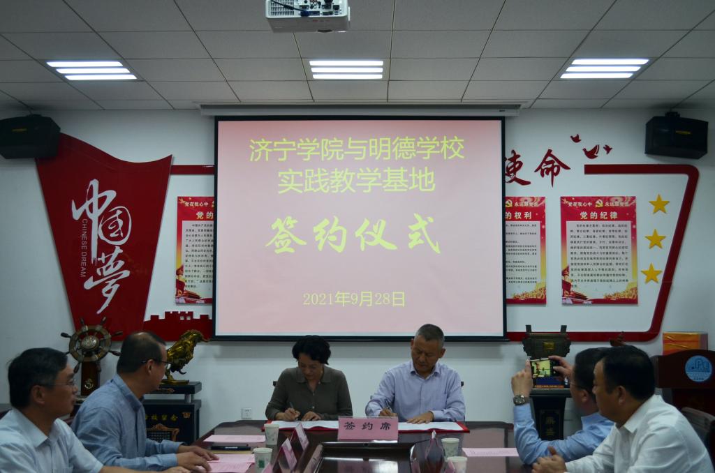9月28日下午,我校在物理科学与智能工程学院会议室与明德学校、时庄街道中学签署实践教学基地协议并举行授牌仪式。我校教务处(教师教学发展中心)处长尹春光、工程学院院长程杰、物理科学与智能工程学院党委书记孙文、副院长张营、办公室主任孟凡华、物理学专业主任岳现房,时庄街道中学校长朱明新、办公室主任王鸣新,明德学校副校长范洪波、教务处主任孔令芳参加签约授牌仪式。