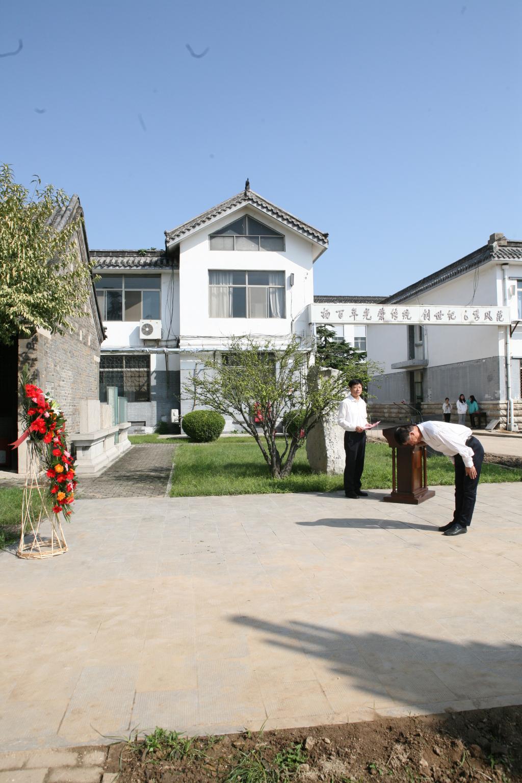 在悠扬的古乐声中,该院党委书记朱宁波代表全体师生向先师孔子像敬献花篮,师生怀着崇敬之情向孔子像行鞠躬礼。拜师礼后,师生齐声诵读《论语》,“学而不思则罔,思而不学则殆”,“见贤思齐焉,见不贤而内自省也”,“君子坦荡荡,小人长戚戚”……一句句影响了中华儿女两千多年的经典名句回荡在校园上空。