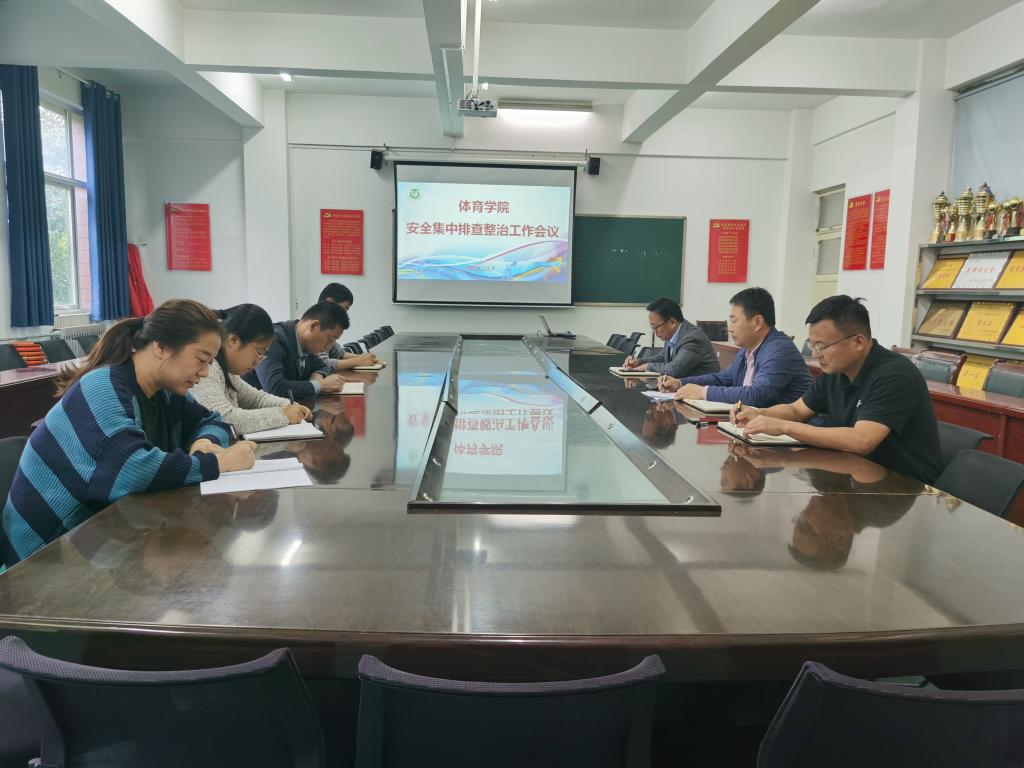 为深入贯彻落实全省学校安全工作电视电话会议精神,推进落实学院常态化安全管理机制,提升学院安全工作水平,切实维护校园安全稳定和师生身心健康,10月7日,体育学院在党员活动室内召开安全工作专题会议。该院党委书记辛亚杰主持会议并讲话,该院安全工作领导小组成员参加了会议。