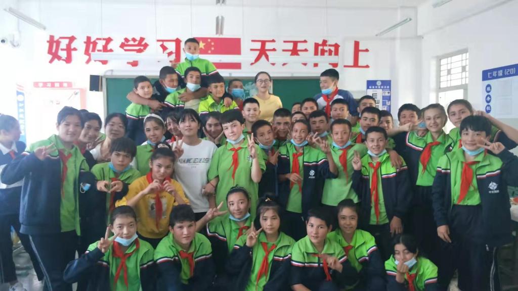 经过漫长的隔离,我们终于走出去见到了自己的学生,刚开始的时候我很紧张,第一节课教什么呢,最终我打算从介绍自己开始,我以为我第一节课会有点尴尬,但那里的学生热情让我紧绷的神经松弛了下来,当我说出我很喜欢新疆时,班里发出了热烈的掌声,他们大声对我说,欢迎来到新疆。