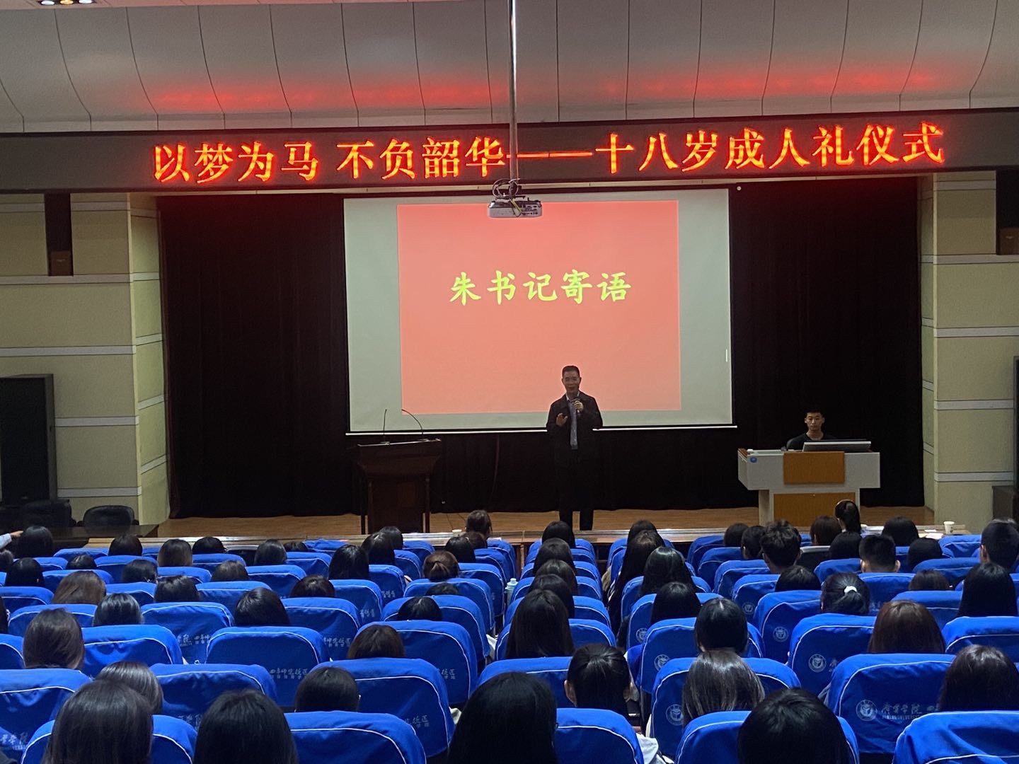 10月6日下午,初等教育学院2018级四、五、六班181名同学在学术会堂举行了“以梦为马,不负韶华”——成人礼仪式,仪式由巩原同学主持,辅导员和部分任课教师参加,该院党委书记朱宁波受邀出席。
