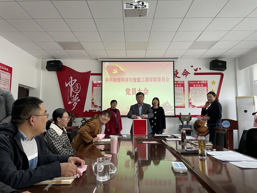 10月21日,物理科学与智能工程学院党委换届选举党员大会在会议室举行,该院领导班子和全体师生党员参加了会议,会议由该院党委书记孙文主持。