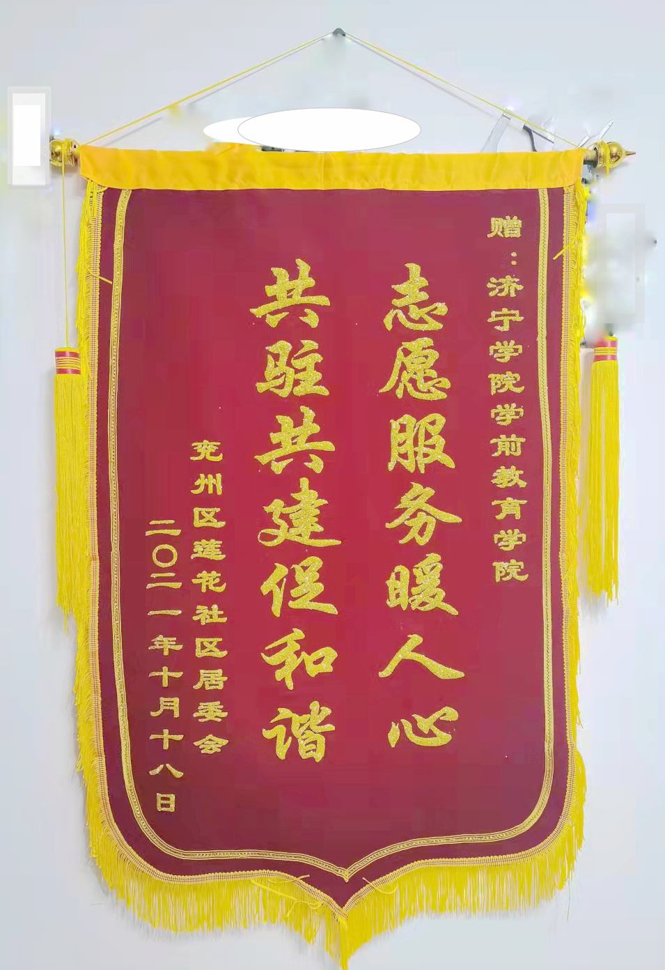 莲花社区党委书记曹勇简要介绍了莲花社区党建工作的基本情况,阐述了新时代城市社区党建的新特点、新要求,对学前教育学院积极为社区进行志愿服务和组织特色文艺活动表示感谢。他代表莲花社区党委向学前教育学院赠送了内容为“志愿服务暖人心,共驻共建促和谐”的锦旗。学前教育学院党委书记马云水向社区同志介绍了该院党建及党史学习教育的基本情况,表达了与社区党建共建协同育人的愿望。双方就进一步加强合作交流、疫情防疫及做好核检预登记等工作深入交换了意见。