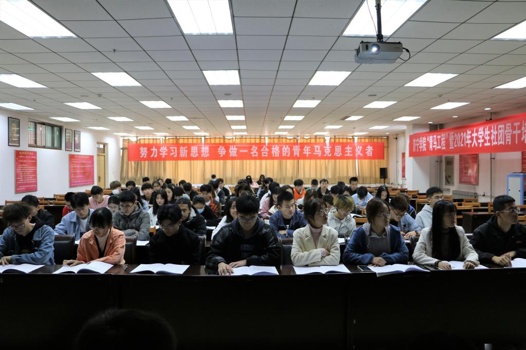 10月23日,亚星在线登录官网“青马工程”暨2021年大学生社团骨干培训班在图书馆C602正式开班。校团委全体人员参加活动,来自全校各学生社团的71名骨干参加开班式。